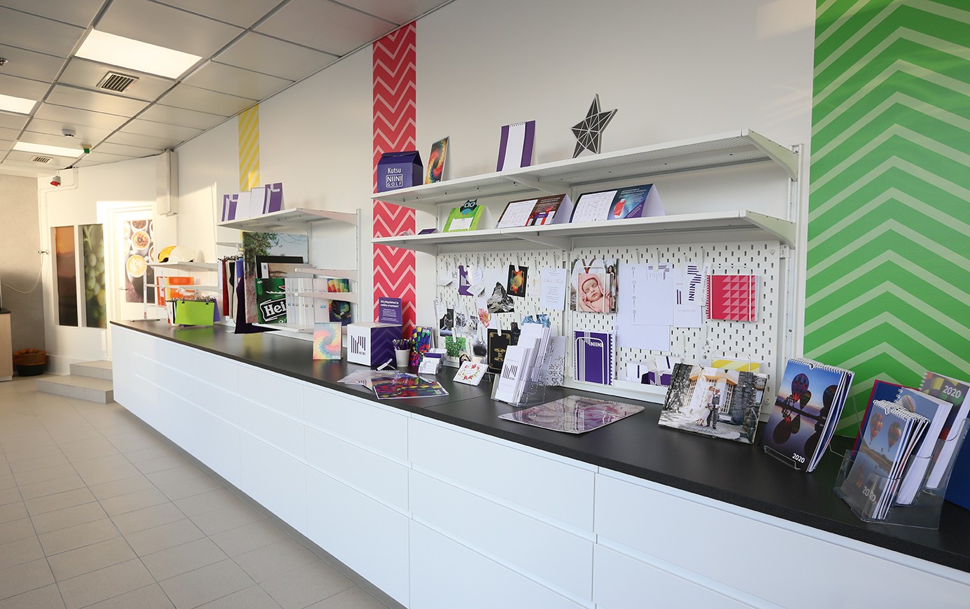 Asiakkaitamme varten luotu showroom valmistui viime vuoden lopulla. Showroom tarjoaa erilaisia ideoita ja painotuotemalleja yritysten markkinointi- tai muuhun käyttöön. Olemme saaneet positiivista palautetta asiakkailtamme tilasta. Ja toki olemme itse tyytyväisiä ja ylpeitä siitä.