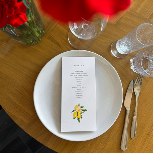 Hääpäivän tunnelman kruunaavat tarkkaan harkitut yksityiskohdat. Meiltä löydät häiden ohjelma- ja menukortit, jotka sopivat hääteemaan ja kattaukseen. Korosta juhlan henkilökohtaisuutta tyylikkäillä pöytäkorteilla ja vieraiden paikat selkeyttävillä paikkakorteilla. Tee juhlastasi ikimuistoinen luomalla hauska kuvauspiste photobooth-kehyksen avulla!