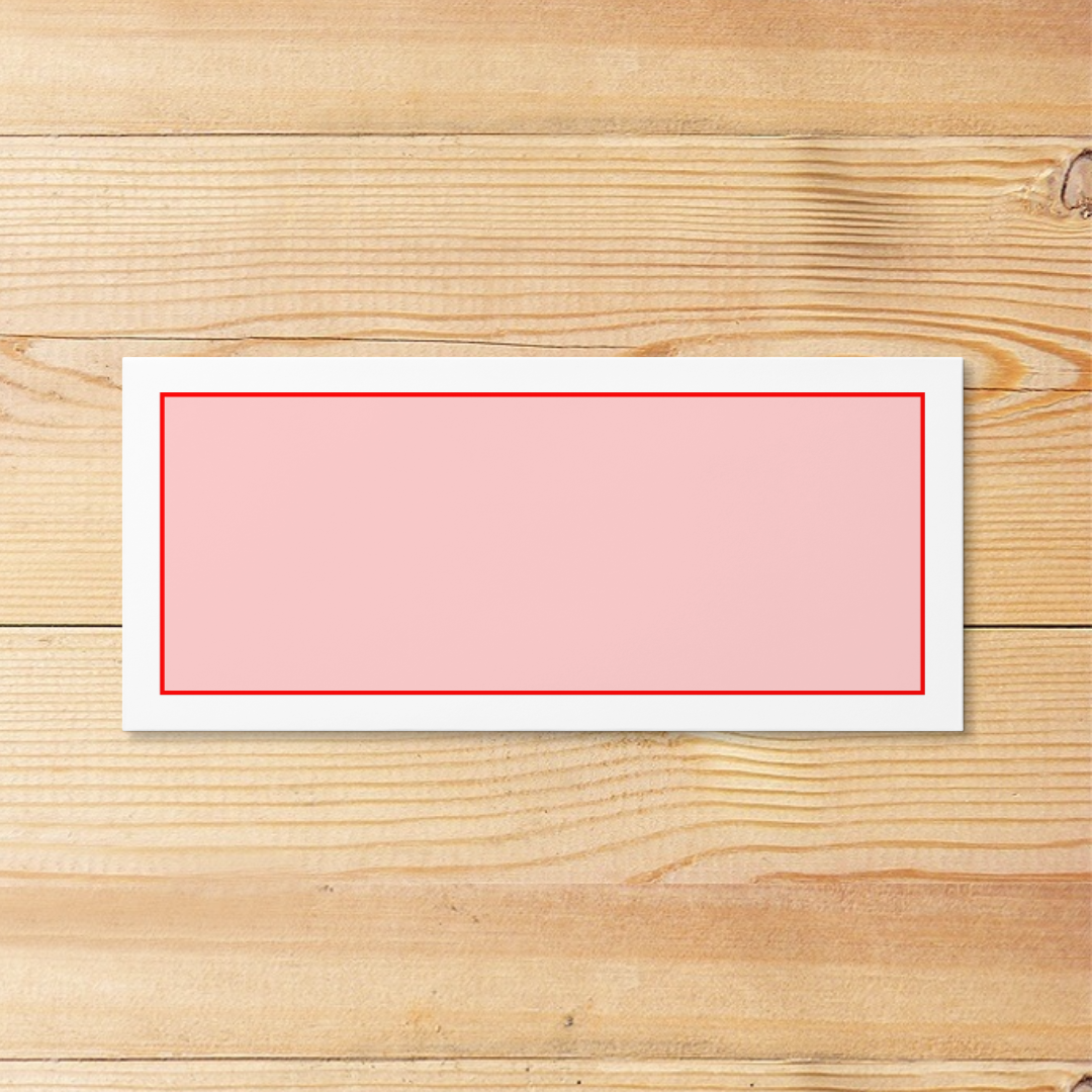 Huomioithan, että kirjekuorien painatuksessa reunoille jää aina 3–5 mm valkoinen marginaali (Kuva) Reunasta reunaan ulottuvaa painatusta ei voida tehdä.