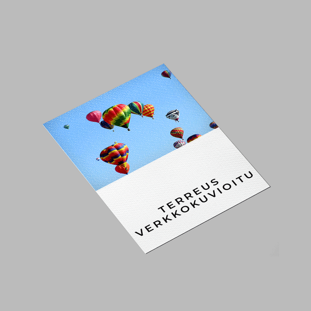 Lataa valmis aineistosi tai suunnittele oma A5 kortti verkkokauppamme suunnittelutyökalulla.