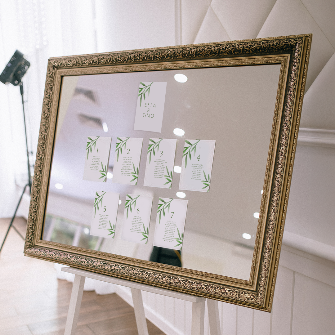 Selkeytä juhlavieraiden sijoittuminen kauniisti suunnitellulla pöytäkartalla, jossa jokainen pöytä on esitetty omana korttinaan. Korttipohjainen pöytäkartta on helposti muunneltava ja toimiva ratkaisu niin pieniin kuin suuriin juhliin. Voit järjestää kortit haluamallasi tavalla juhlatilan mukaan – asettele ne vaikka taustatauluun, narulle pyykkipojilla tai kehyksiin. Korteille mahtuu selkeästi pöydän numero sekä vieraiden nimet. Suunnittele kortit itse tai lataa valmis tiedosto – valitse ulkoasu, värit ja fontit juhlan tyyliin sopivaksi.
