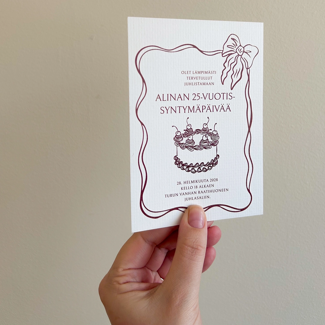 Valitsemalla painetun kutsun teet juhlasta erityisen jo ensimmäisestä hetkestä lähtien. Meiltä saat kauniit, yksilöllisesti suunnitellut ja painetut syntymäpäiväkutsut helposti ja nopeasti – juuri sinun tyyliisi.