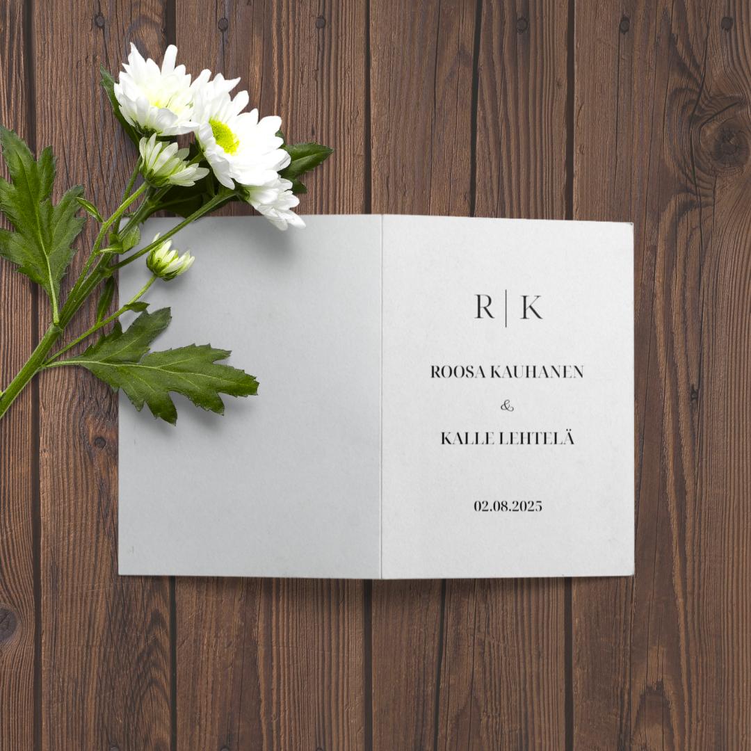 Lataa valmis aineistosi tai suunnittele oma taitettu hääkutsu A5 verkkokauppamme suunnittelutyökalulla.