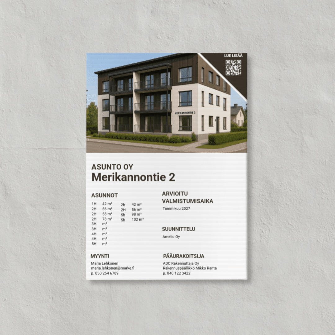 Verkkokauppamme helppokäyttöisessä suunnittelutyökalussa voit lisätä tauluun yrityksen logon, projektin tiedot, rakennuttajan nimen ja muita olennaisia tietoja. Voit käyttää valmiita pohjia tai suunnitella taulun täysin alusta itse. Näin saat varmasti juuri tarpeisiisi sopivan kyltin.